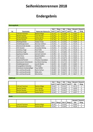 21 junge Rennfahrer und Rennfahrerinnen zwischen sechs und zwölf Jahren kämpften am vergangenen Sonntag beim Seifenkistenrennen an der Ostmauer um den Sieg. Hier noch einmal alle Ergebnisse zum Nachlesen.