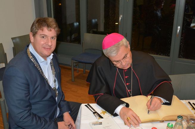 Zu Beginn seines Aufenthalts besuchte der Erzbischof das Geseker Krankenhaus und zelebrierte im Anschluss die Messer in der Stadtkirche St. Petri. Beim Empfang im Pfarrsaal der Stadtkirche trug sich der Erzbischof von Paderborn in das Goldene Buch der Stadt Geseke ein.