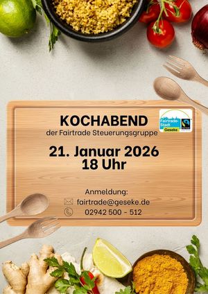 Die FAIRTRADE-Steuerungsgruppe Geseke lädt am Mittwoch, 21. Januar 2021 um 18.00 Uhr zu einem besonderen Kochabend mit fair gehandelten Produkten ein.