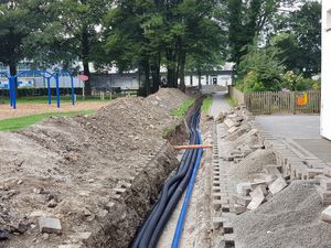 Nach rund 45 Jahren werden die Versorgungsleitungen des Sportzentrums Störmede erneuert. Zum Sportzentrum gehört neben der Sporthalle auch das Lehrschwimmbecken und das Sportheim. Von der Pankratius-Grundschule, hier befindet sich die Heizzentrale und die Wasserversorgung, werden neue Heizungs- und Wasserleitungen verlegt. Gleichzeitig wird ein Leerrohr für einen Lichtwellenleiter mit verbaut. So wird auch das Sportzentrum künftig mit Internet versorgt sein. Rund 50.000 € kostet diese Maßnahme.