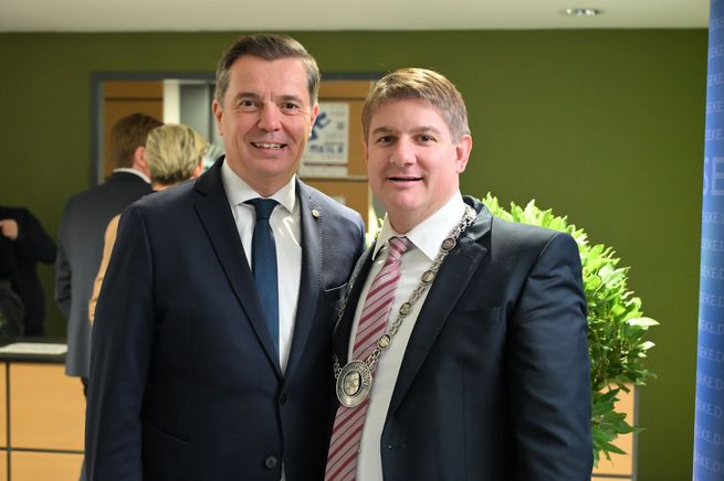 Bei voll besetztem Saal und musikalischer Begleitung der Stadtkapelle Geseke blickte Bürgermeister Dr. Remco van der Velden auf das vergangenen Jahr und Projekte zurück und gab ebenso einen Ausblick auf die Zukunft der Stadt Geseke.