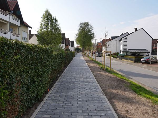 Die Umsetzung des Gestaltungskonzeptes der 2,9 km langen Wallanlage in der Innenstadt von Geseke, die zu 60% aus Mitteln der Städtebauförderung finanziert wird, erfolgt in mehreren Bauabschnitten. Im Dezember 2022 haben die Arbeiten im Wallabschnitt Ostmauer zwischen Wichburgastraße und Hellweg begonnen. Der Gehweg wurde mit versickerungsfähigem Pflaster befestigt. Entsprechend den Festsetzungen des Grünkonzeptes für die Wallanlage wurde die Baumbepflanzung ergänzt. Verbleibende Wurzelstöcke alter Bäume wurden gerodet, um so die Herstellung einer ausreichend breiten Gehwegtrasse zu ermöglichen. An einigen Stellen fällt die Gehwegpflasterung rund um den Baumwurzelbereich jedoch schmaler aus. Hier war es unter Berücksichtigung der vorhandenen Grundstückshöhen und des einzuhaltenden Gefälles nicht möglich zu pflastern, ohne die vorhandenen Baumwurzeln zu schädigen. In diesen sensiblen Bereichen wird stattdessen wird mit Dolomitsand gearbeitet.