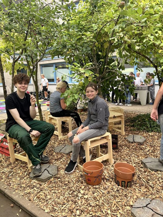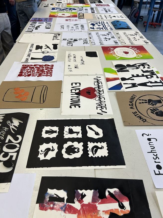 So wurde unter anderem im Projekt „Art Attacks!“ künstlerisch gearbeitet, während andere Gruppen den Schulhof und die Flure als Lern- und Lebensräume neu gestalteten. Im Chemieraum wurde nachhaltig mit Zement gebaut, in einem weiteren Projekt experimentierten Schülerinnen und Schüler mit Siebdruck. Die „Songwerkstatt“ verarbeitete ihre Gedanken musikalisch, im „Grünen Klassenzimmer“ ging es um ökologische Bildung in freier Natur.