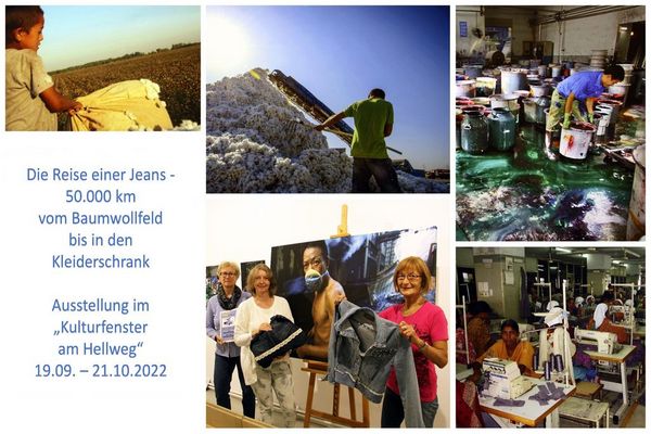 Die Ausstellung „Die Reise einer Jeans – 50.000 km vom Baumwollfeld bis in den Kleiderschrank“ ist ab dem 19. September 2022 bis zum 21. Oktober 2022 im „Kulturfenster am Hellweg“ in Geseke zu finden. Am Sonntag, 25. September 2022 ist die Ausstellung von 13.00 Uhr bis 18.00 Uhr geöffnet. Darüber hinaus können interessierte Gruppen und Schulklassen die Ausstellung nach Terminabsprache besuchen. Bitte melden Sie sich per E-Mail unter kagreuel@aol.com zwecks Abstimmung eines Besuchstermines.