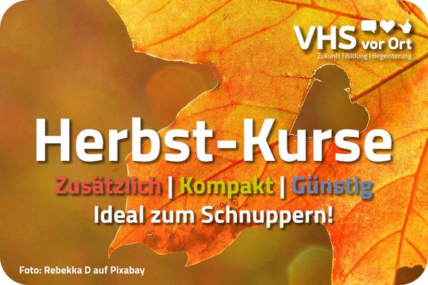 Die Zusatzkurse starten ab dem 26. Oktober und damit in der Woche direkt nach den Herbstferien. Die Angebote sind ausschließlich über die Internetseiten der VHS unter www.vhs-vor-ort.de einsehbar.