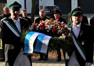 In seinen abschließenden Worten nach der Niederlegung eines Gedenkkranzes dankte Oberst Matthias Schumacher dem Musikzug Störmede, dem MGV Sangeslust Ehringhausen sowie den zahlreichen Fahnen- und Vereinsabordnungen für die Teilnahme.