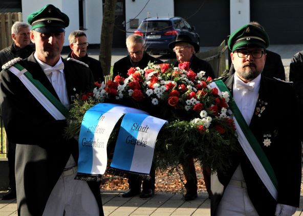 In diesem Jahr fand die zentrale Gedenkfeier der Stadt Geseke anlässlich des Volkstrauertages in Ehringhausen statt. In seiner Predigt während des einleitenden Gottesdienstes mahnte Pfarrer Rainer Stahlhacke die Anwesenden, neben den Toten der Kriege und den Ermordeten während der NS-Diktatur, auch die mehr als 3.200 Menschen nicht zu vergessen, die als Angehörige der Bundeswehr seit 1955 ihr Leben für Frieden und Freiheit verloren haben.