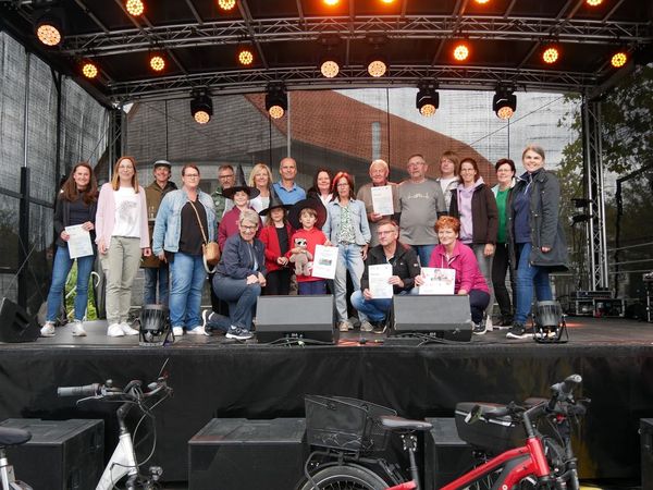 Am 23. September zeichneten Susanne Schulte-Döinghaus, stellvertretende Bürgermeisterin, und Klimaschutzbeauftragte Julia Krümmelbein die besten Teams sowie Radelnde aus Geseke im Rahmen des Hexenstadtfestes auf der Bühne am Marktplatz aus.