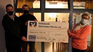 Die Fußballer des SuS Störmede haben in den vergangenen Monaten rund 100 Mund-Nasen-Schutzmasken, die mit dem Vereinslogo versehen sind, verkauft. Aus dem Erlös resultiert die Spende, die auch noch vom Verein auf eine runde Summe aufgestockt wurde. "Als Sportverein wissen wir, wie wichtig Nachwuchsarbeit ist. Umso mehr freuen wir uns, dass wir mit unserer Spende den Nachwuchs im Dorf unterstützen können", erklären Tony Chavet und Janek Dewald.