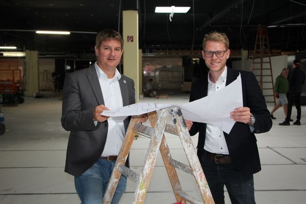 Erst Minipreis, dann Combi und jetzt Edeka - der Markt an der Lüdischen Straße wurde im Frühjahr 2018 von dem jungen Unternehmer Paul Penner übernommen und wird zur Zeit zum Markt "Edeka bei Paul" umgebaut. Nachdem Herr Penner sein Bauvorhaben vor einiger Zeit Bürgermeister Dr. Remco van der Velden und Wirtschaftsförderer Hermann-Josef Wulf in der Stadtverwaltung auf dem "Papier" vorstellte, machte sich der Bürgermeister nun direkt vor Ort ein Bild vom Umbau. Die rund 1.400 qm große Verkaufsfläche wurde komplett entkernt. Die Renovierungsarbeiten laufen auf Hochtouren, denn bereits in drei Wochen soll der Markt "Edeka bei Paul" eröffnet werden. Neue Bodenbeläge, neuer Wandanstrich und Wandfliesen, neue Kühlelemente, neuer Außenanstrich und vieles anderes wird gerade im Laden ausgeführt. Das 30köpfige Team, darunter alle Mitarbeiter des ehemaligen Combi-Marktes, nutzt die Bauphase zur Teambildungs- und Schulungsmaßnahmen. Bürgermeister Dr. Remco van der Velden: "Wir freuen uns, dass mit Paul Penner ein engagierter Jungunternehmer nach Geseke kommt, viel Geld in die Hand nimmt und so einen attraktiven Lebensmittelmarkt mit tollem Einkaufserlebnis innerhalb der Umwallung schafft."