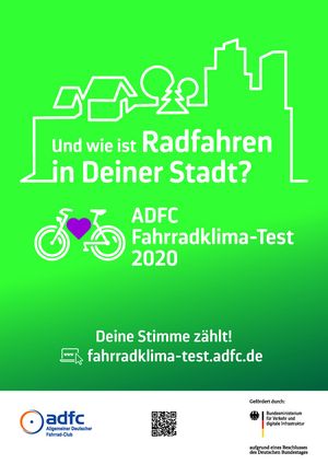 Der Allgemeine Deutsche Fahrrad-Club e.V. initiiert in diesem Jahr wieder einen Fahrradklima-Test. Noch bis zum 30. November 2020 können Radfahrerinnen und Radfahrer die Fahrradfreundlichkeit ihrer Kommune bewerten. Als Sonderbefragung 2020 rückt der Umgang mit der SARS-CoV-2-Pandemie in Bezug auf das Radfahren in den Fokus.