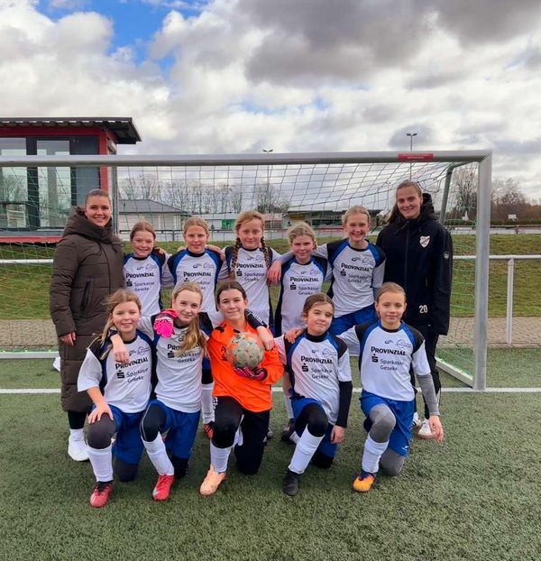 h.v.l.: Lea Scarna (DFB-Trainerin am Antonianum), Valeria Desilve, Lotta Freitag, Leni Aurelia Heidlhoff, Josefine Ilse, Lene Wibbe, Franca Kayser (DFB-Trainerin am Antonianum)