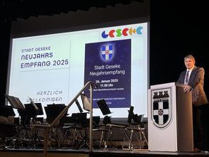 Bei voll besetztem Saal und musikalischer Begleitung des Mandolinenorchester blickte Bürgermeister Dr. Remco van der Velden auf das vergangenen Jahr und Projekte zurück und gab ebenso einen Ausblick auf die Zukunft der Stadt Geseke.