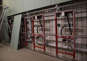 Im Rahmen der rund sechswöchigen Umbauphase haben der Schulhausmeister sowie einige Kollegen des städtischen Bauhofes auch die Trockenbauarbeiten in Eigenleistung übernommen.