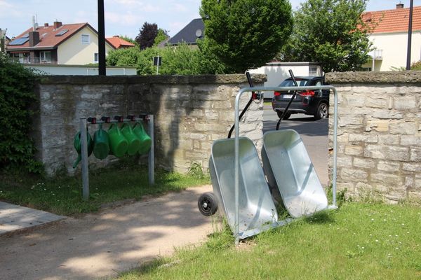 Seit einiger Zeit finden Besucher an den vier Eingängen des Friedhofes Schubkarren zum Ausleihen. Damit gehört das mühselige transportieren von Säcken mit Erde, Blumen für die Grabpflanzung, schwerer Blumenschalen oder anderer unhandlicher, gewichtiger Gegenstände der Vergangenheit an. Gegen einen Pfand von zwei Euro kann eine Schubkarre ausgeliehen werden. Knapp 2.000 € hat die Stadt Geseke für die insgesamt zehn Schubkarren und das Pfandleihsystem investiert. Bürgermeister Dr. Remco van der Velden: "Ich möchte mich bei dem Ideengeber aus der Bevölkerung bedanken. Eine guter Hinweis, der vielen Besucher die Friedhofsarbeit erleichtert."
