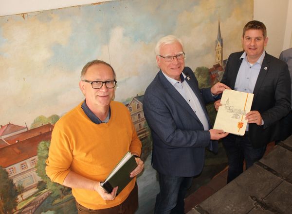 Am 04. Mai übergab Bürgermeister Wessel mit der Schenkungsurkunde der Eheleute Paetzke und der Stadt Erwitte das Werk Witthuhns an Bürgermeister Dr. Remco van der Velden. "Wir freuen uns, dass die Stadt Erwitte ein Bild, das die Stadtansicht Gesekes zeigt, abholt und unserer Stadt schenkt. Wir werden, nachdem es noch etwas restauriert wurde, einen schönen Platz finden", bedankte sich Gesekes Bürgermeister.