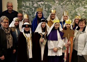 Mit Sternen und Kronen ausgestattet, machten am heutigen Montag, 6. Januar, gleich zehn Sternsinger in der Geseker Stadtverwaltung Station. Neben Segenswünschen überbrachten Caspar, Melchior und Balthasar der stellvertretenden Bürgermeisterin Susanne Schulte-Döinghaus und dem Allgemeinen Vertreter Hermann-Josef Wulf auch eine kleine gesangliche Darbietung. Von Frohsinn, Frieden und Einigkeit war dort die Rede. "Ich finde es toll, dass ihr euch bereit erklärt habt, als Sternsinger von Haus zu Haus zu ziehen. Schön, dass ihr die Menschen zuhause besucht und ihnen die Segenswünsche überbringt", gab Schulte-Döinghaus den Sternsingern mit auf den Weg. Begleitet wurden die Sternsinger von Küsterin Ingrid Josef und Pfarrer Rainer Stahlhacke.