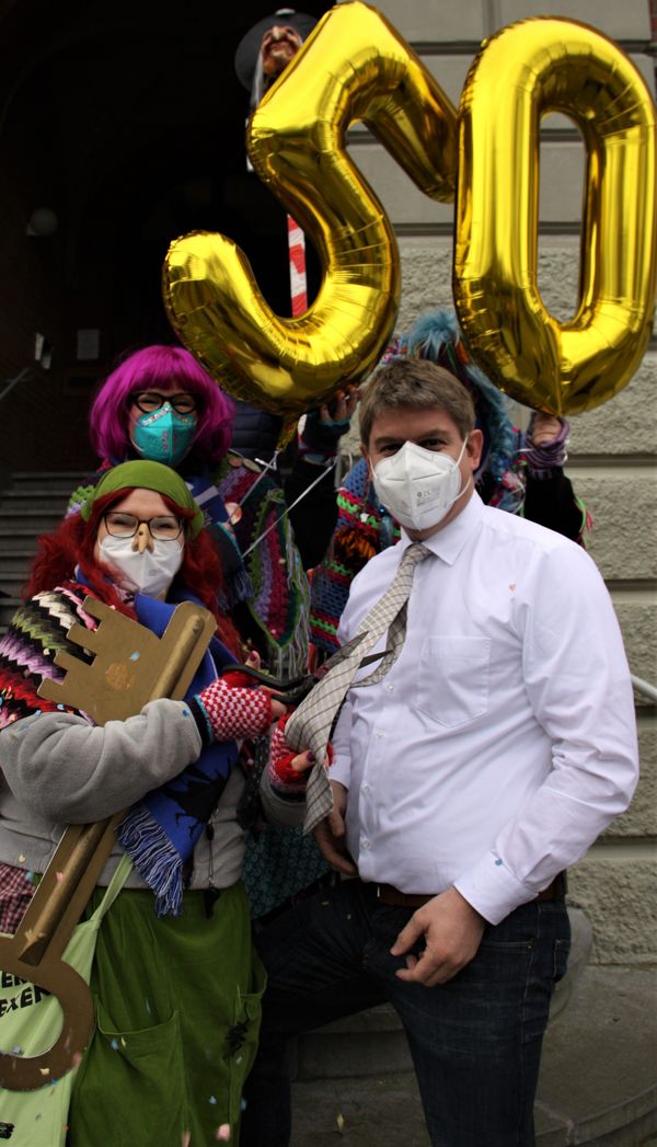 Pünktlich um 11.11 Uhr zogen die Geseker Hexen vor das Alte Rathaus, um sich für die jecken Tage die Schlüsselgewalt über Rathaus und Verwaltung zu sichern. Aufgrund der Corona-Pandemie fiel die Feier jedoch deutlich kleiner aus, als gewohnt. Keine Bühne, keine Programmpunkte, kein Publikum.