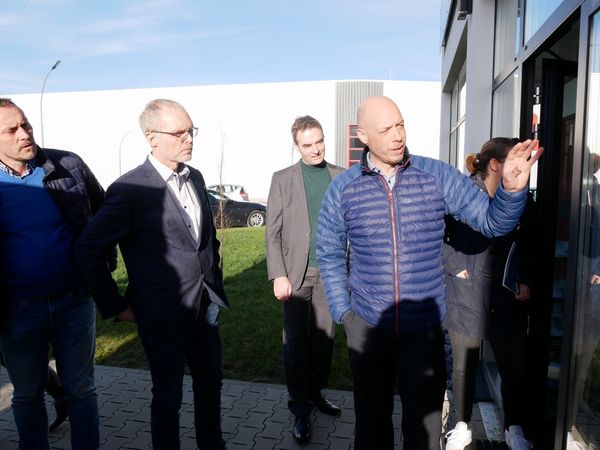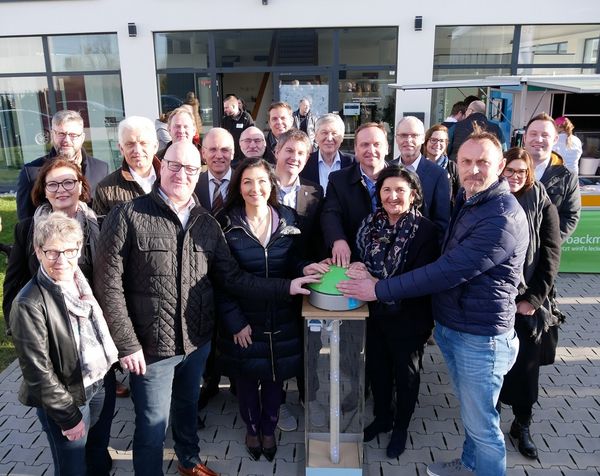 Kreis Soest (kso.2019.01.15.012.jdw). Bei der größten zusammenhängenden Baustelle im Kreis Soest ist der nächste Meilenstein erreicht: Im Gewerbegebiet Geseke-Ost werden die ersten Glasfaseranschlüsse des vom Bund und Land geförderten Breitbandausbaus des 3. Calls aktiviert. Eine symbolische Inbetriebnahme des Netzes fand am Mittwoch, 15. Januar 2020, in großer Runde bei der Firma Panek Türen und Fenster statt. Per Buzzer aktivierte Landrätin Eva Irrgang symbolisch das von der innogy TelNet GmbH gebaute Breitbandnetz.