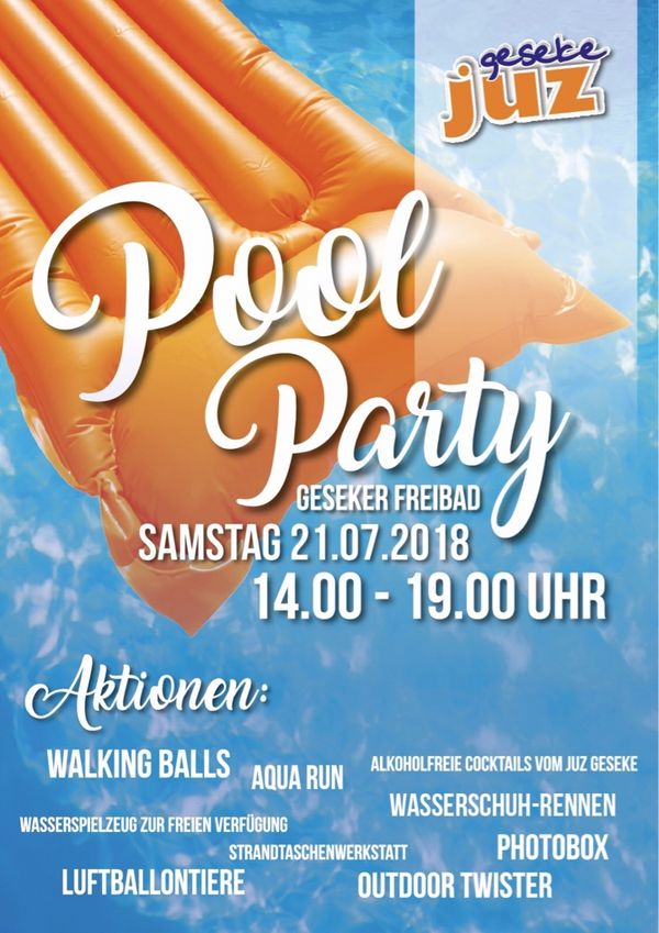 Am Samstag, 21. Juli, verwandelt sich das Geseker Freibad in ein Sommerparadies. Packt die Badehose ein, bringt gute Laune mit und feiert mit dem JUZ eine große Pool-Party.
