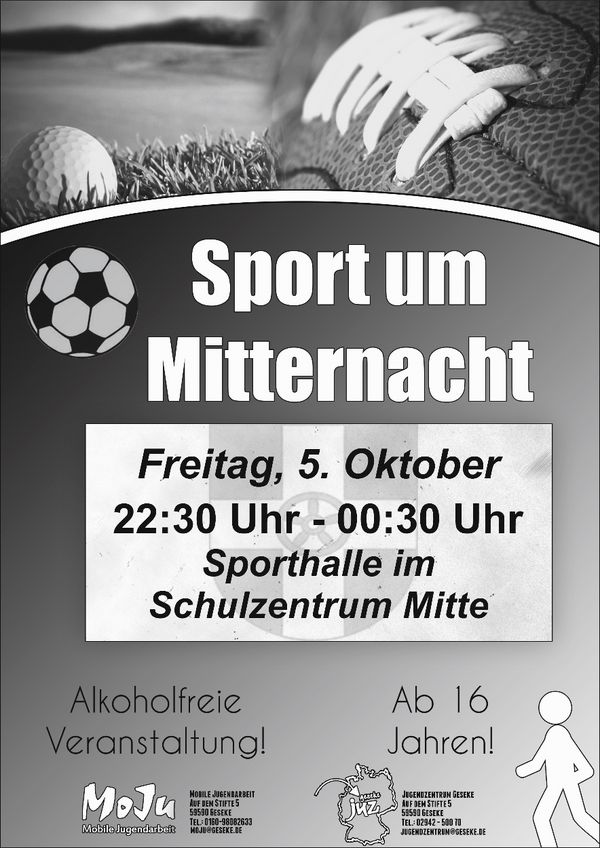 "Sport um Mitternacht" ist eine Veranstaltung der Mobilen Jugendarbeit MoJu in Kooperation mit dem städtischen Jugendzentrum JUZ.