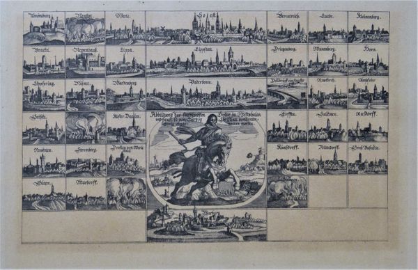 Dieses Flugblatt von 1622 war eine Drohung. Es zeigt 38 Orte in Hessen und Westfalen, die der "Tolle Christian" (geboren 1599 in Gröningen - gestorben 1630 in Wolfenbüttel) besetzt oder zerstört hatte. Auch "Geißke" (also Geseke) ist vertreten. Christian von Braunschweig-Wolfenbüttel ist in der Mitte zu Pferde dargestellt. In Geseke war er Ende Januar 1622 eingerückt, seine Truppenteile wurden allerdings in einem Handstreich Ende März von katholischen Truppen wieder aus der Stadt geworfen. Christian von Braunschweig belagerte Geseke daraufhin mit rund 5.000 bis 6.000 Mann, allerdings erfolglos. Auf dieses Ereignis geht die Geseker Lobetagsprozession zurück. Im vergangenen Jahr dienten die Ereignisse von März/April 1622 als Vorlage für den Film "Sturm auf Geseke".