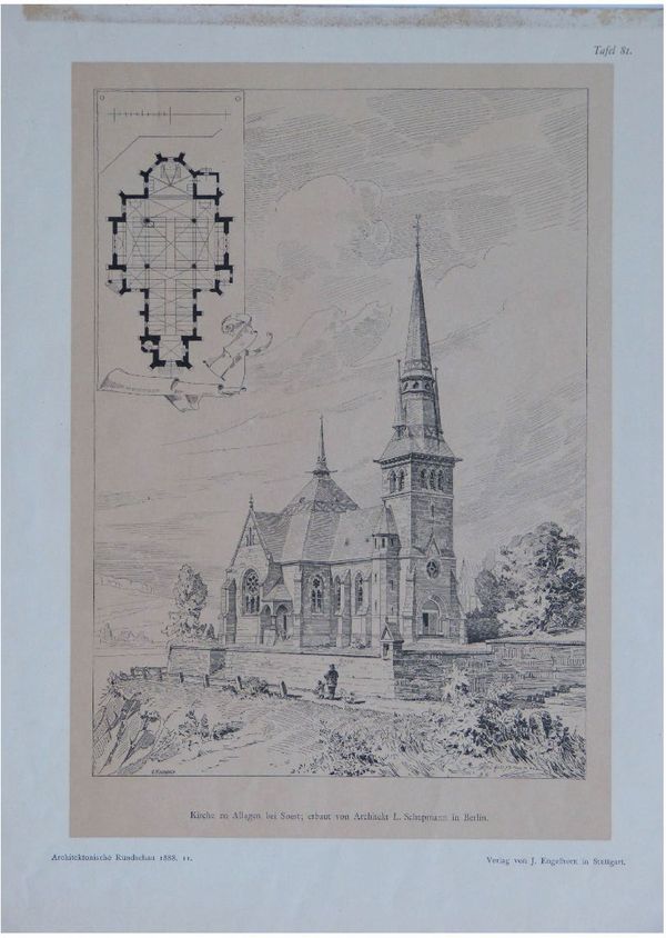 Die Vorstellung der Pläne in dieser renommierten Zeitschrift mit Zeichnung und Angaben von Material und Kosten (50 000,-- M.) zeigt, dass die neogotische Kirche als beispielhaft für diesen Bautypus angesehen wurde. In dem gleichen Heft werden auch Beispiele von anderen Bauten, wie Wohnhäusern oder das Hofburgtheater in Wien vorgestellt.