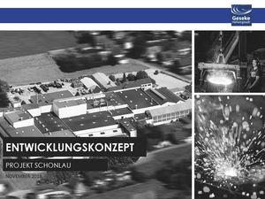 Die Firma Schonlau ist ein mittelständiges, familiengeführtes Eisengießereiunternehmen, das sich zentral im Westen der Kernstadt von Geseke befindet. Auf Grund der geschichtlichen Entwicklung und der Lage des Standortes gibt es ein Spannungsfeld zwischen Wohnbau- und Unternehmensentwicklung. Die unbefriedigende Situation im öffentlichen Verkehrsraum, Konfliktsituationen durch An- und Ablieferungsverkehr in Kumulation mit Alltags- und Schulverkehr, Lärm durch Verkehr, Produktion und innerbetriebliche Wegekonstellationen, Geruch und Staub als Immissionsfaktor und die Integration in die städtebauliche Struktur bieten Konfliktpotenzial. Herausforderung für das Unternehmen sind die derzeitigen Produktions- und Lagerstandorte, die sich auf zwei Areale erstrecken und durch die Straße "Auf den Strickern" getrennt werden. Das führt zu unzeitgemäßen Produktionsabläufen, zergliederten Strukturen, unnötigen Wegen und keiner zweckgerechten Situation der innerbetrieblichen Verkehre.