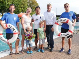 Am vergangenen Dienstag konnte im Geseker Freibad der 25.000 Besucher der Freibadsaison 2023 begrüßt werden. Jubiläumsbesucher war Frank Jakobs-Thiedecke, der mit seiner Frau Ann-Kathrin und den gemeinsamen Söhnen Michel und Pepe die spätsommerlichen Temperaturen für einen Freibadbesuch nutzte.
