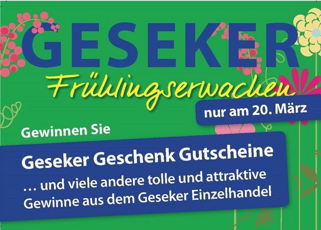 Passend zum kalendarischen Frühlingsanfang laden K&K - Verein der Kulturfreunde e.V. und die Stadt Geseke gemeinsam mit dem Geseker Einzelhandel zum Geseker Frühlingserwachen und damit zum Bummel in die Geseker Innenstadt ein.