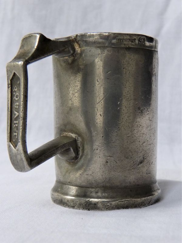 Aus dieser Zeit stammt ein 1/8 Quart-Messbecher aus Zinn, der kürzlich dem Geseker Hellweg-Museum geschenkt wurde. Der Inhalt errechnet sich folgendermaßen: 1 preuß. Quart (Stof) = 64 Kubikzoll = 1/27 Kubikfuß = 1,1450313 Liter, 1/8 = 0,143129 Liter. Die Maßangabe "1/8 Quart" findet sich auf dem Henkel und am Rand ist eine preußische Eichmarke angebracht mit der Ortsbezeichnung Lippstadt.