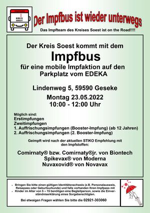 - Kinder und Jugendliche zwischen 5-15 Jahren benötigen eine Begleitperson, sowie die Einverständniserklärung eines Sorgeberchtigten. Die Vordrucke finden Sie unter "Links & Downloads". https://www.kreis-soest.de/start/startseite/corona/koordination/impfkoordination.php