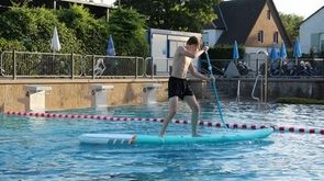 Für diesen SportSpaß werden zwei Bahnen jeden Montag von 15.00 Uhr bis 18.00 Uhr gesperrt. Ihren Gleichgewichtssinn können Kinder und Jugendliche mit viel Spaß auf dem Board trainieren. Aber, die jungen Schwimmerinnen und Schwimmer müssen das Jugendschwimmabzeichen in Bronze den Bademeistern vorweisen, bevor sie auf das Board steigen. Zusätzliche Gebühren zu dem Freibadeintritt fallen natürlich nicht an. Damit alle jungen Schwimmerinnen und Schwimmer den Sport-Spaß probieren können, wird das Paddling zeitlich begrenzt. "Sollte das Freibad auf Grund des Wetters aus allen "Nähten" platzen und wir nicht auf zwei Bahnen verzichten können, dann muss das Angebot leider ausfallen", informiert das Bademeisterteam .